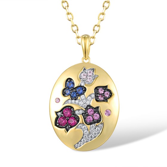 Sterling Silver w/ Yellow Black White Plating Pendant Blue Nano Cubic Zirconia,Created Pink Sapphire,Created Ruby,White Cubic Zirconia (P316750MULSZ925)