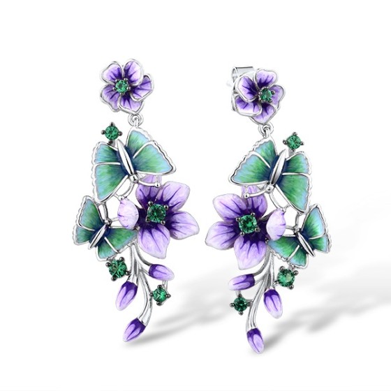 Sterling Silver w/ Black White Plating Earrings Enamel,Green Spinel (E316093ENASK925)