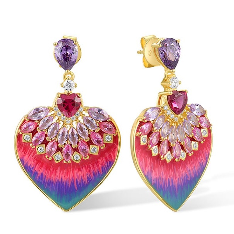 Sterling Silver w/ Yellow Plating Earrings Amethyst Cubic Zirconia,Created Pink Sapphire,Created Purple Nano Spinel,Enamel,Red Nano Crystal,White Cubic Zirconia (E317450ENASY925)