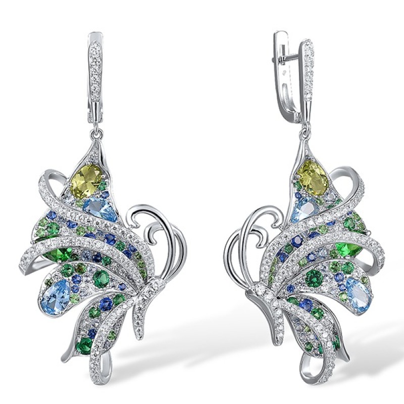 Sterling Silver Earrings Blue Nano Cubic Zirconia,Blue Spinel,Green Nano Cubic Zirconia (Per,Green Spinel,White Cubic Zirconia (E317282MULSL925)