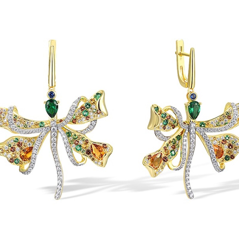 Sterling Silver w/ IONIC YELLOW PLATING Earrings Blue Nano Cubic Zirconia,Green Spinel,Nano Brown Spinel,White Cubic Zirconia,Yellow Nano Cubic Zirconia (E317281MULSP925)
