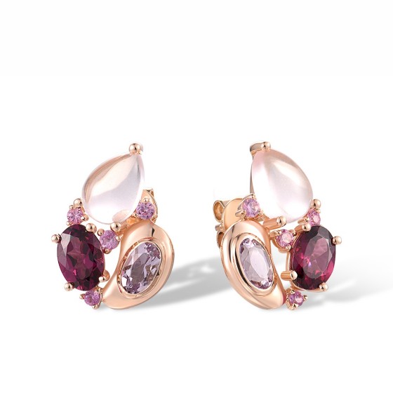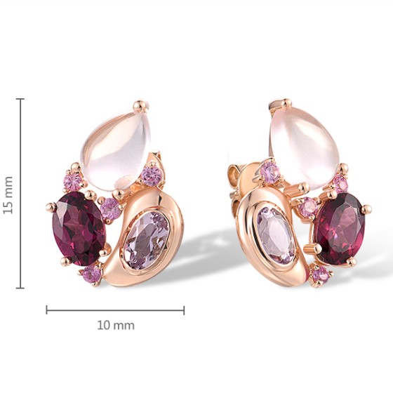 14KR Earrings Amethyst,Pink Quartz,Pink Sapphire,Rhodolite Garnet (E318246MUL14KR)