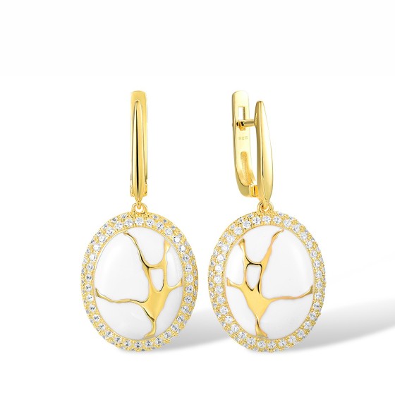 Sterling Silver w/ Yellow Plating Earrings Enamel,White Cubic Zirconia (E318090ENASY925)