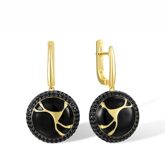 Sterling Silver w/ Yellow Black Plating Earrings Black spinel,Enamel (E318089ENASC925)