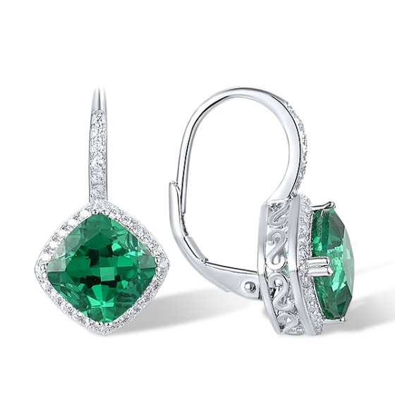 Sterling Silver Earrings Green Spinel,White Cubic Zirconia (E318065GSZSL925)