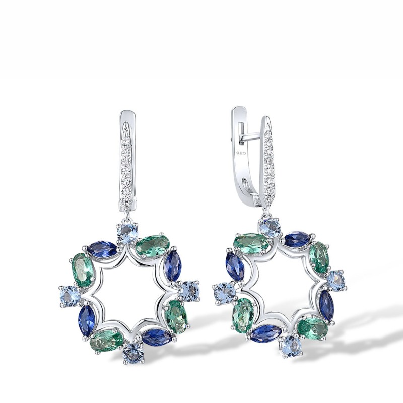 Sterling Silver Earrings Blue Spinel,Green Spinel,White Cubic Zirconia (E317893MULSL925)