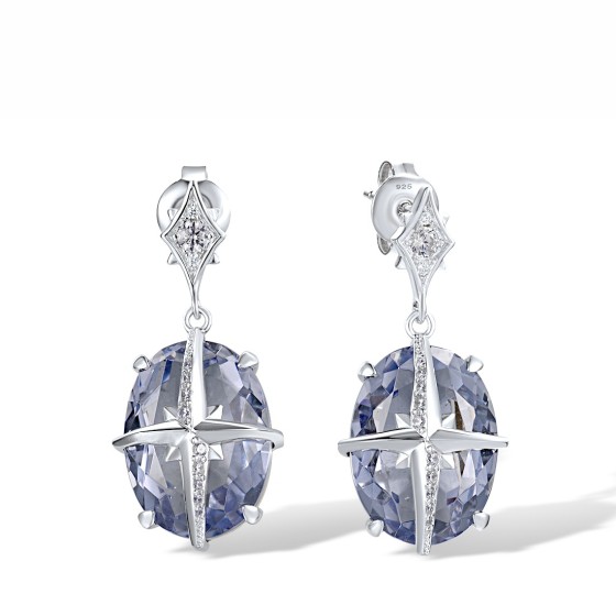 Sterling Silver Earrings Purple Glass,White Cubic Zirconia (E317889PGZSL925)