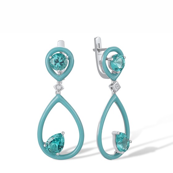 Sterling Silver Earrings Enamel,Green Spinel,White Cubic Zirconia (E317885ENASL925)