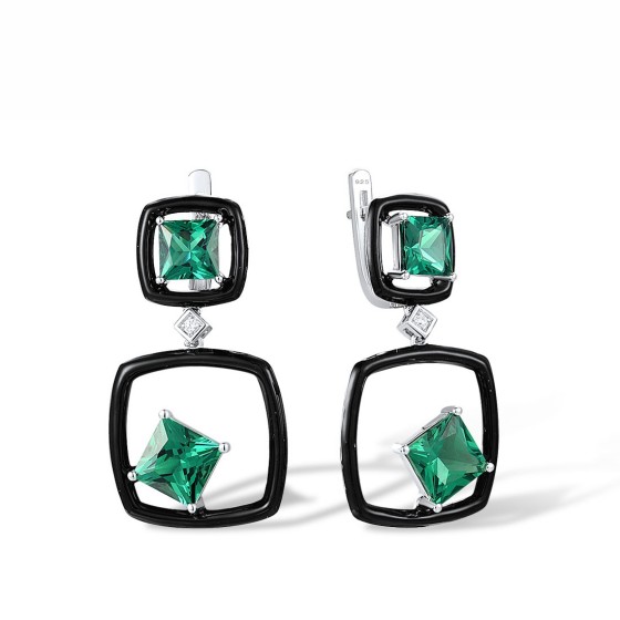 Sterling Silver Earrings Enamel,Green Spinel,White Cubic Zirconia (E317883ENASL925)