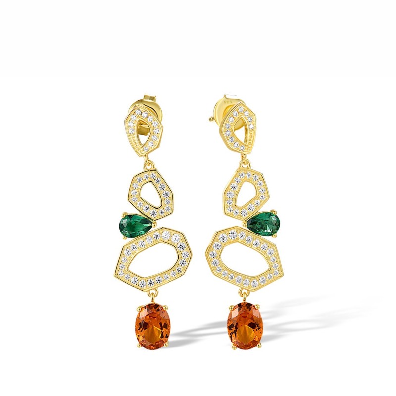 Sterling Silver w/ Yellow Plating Earrings Green Spinel,White Cubic Zirconia,Yellow Nano Cubic Zirconia (Ci (E317855GSYZSY925)
