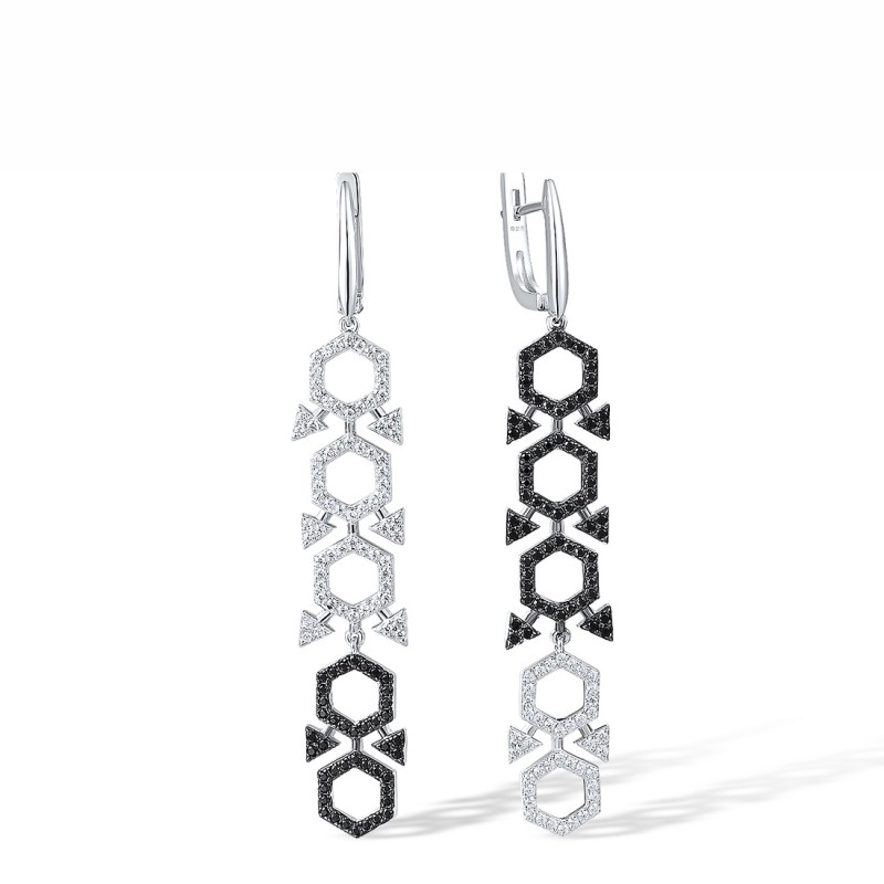 Sterling Silver w/ Black White Plating Earrings Black spinel,White Cubic Zirconia (E317852BSNZSK925)