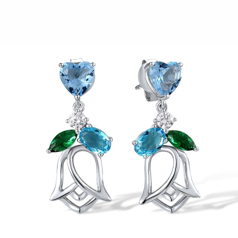 Sterling Silver Earrings Blue Glass,Green Glass,White Cubic Zirconia (E317846BGRZSL925)