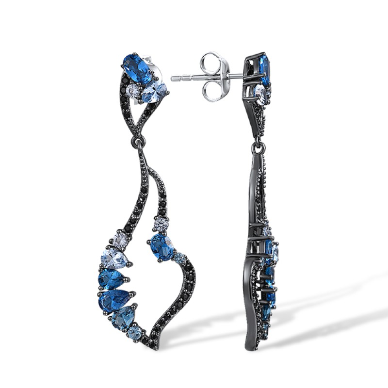 Sterling Silver w/ Black White Plating Earrings Black spinel,Blue Spinel (E317652BLSSK925)