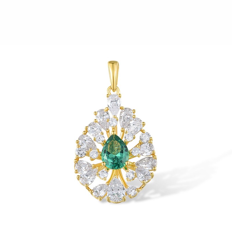 Sterling Silver w/ Yellow Plating Pendant Green Spinel,White Cubic Zirconia (P317444GSZSY925)