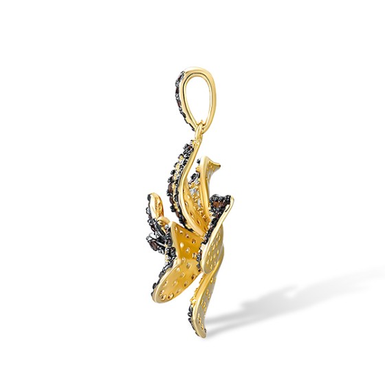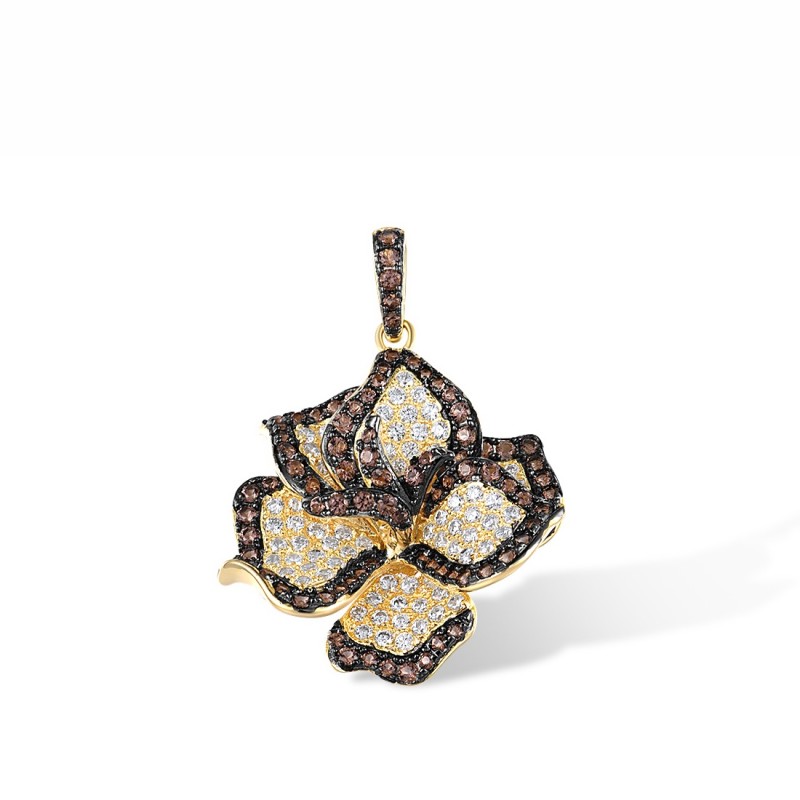 Sterling Silver w/ Yellow Black Plating Pendant Nano Brown Spinel,White Cubic Zirconia (P316899NBZSC925)