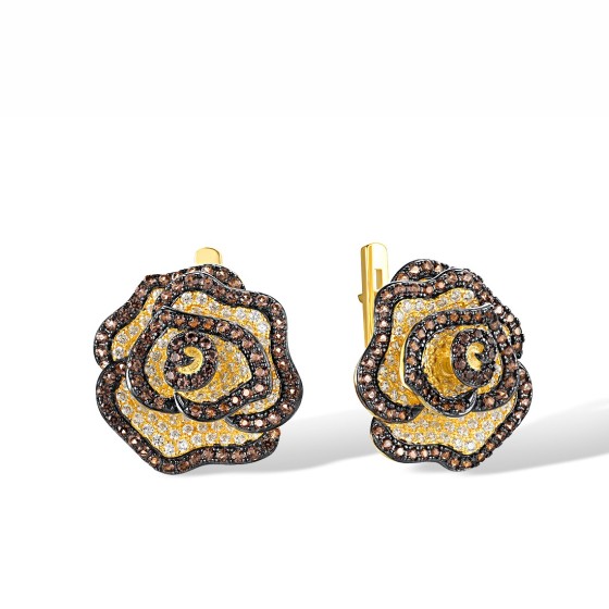 Sterling Silver w/ Yellow Black Plating Earrings Nano Brown Spinel,White Cubic Zirconia (E316897NBZSC925)