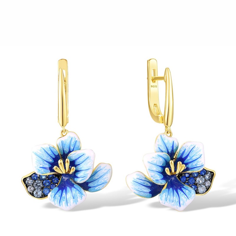 Sterling Silver w/ Yellow Black Plating Earrings Blue Spinel,Enamel (E316399ENASC925)
