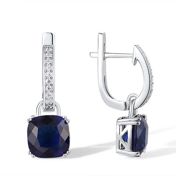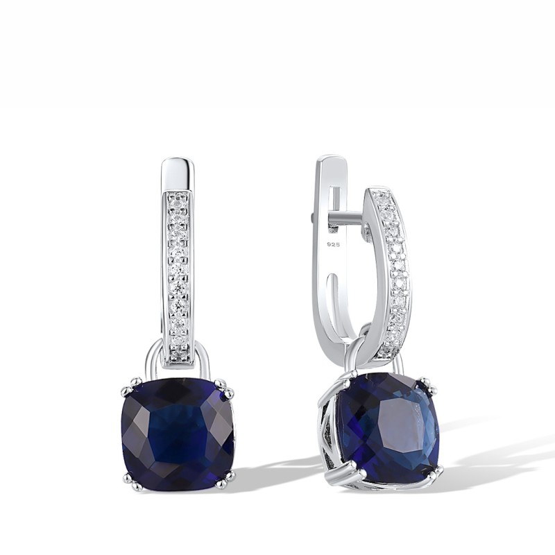 Sterling Silver Earrings Blue Glass,White Cubic Zirconia (E304362SABLGZ1SL925)
