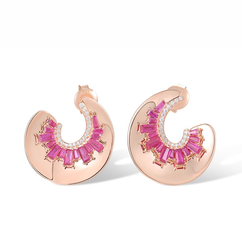 Sterling Silver w/ Rose Plating Earrings Created Ruby,White Cubic Zirconia (E317887CRZSR925)