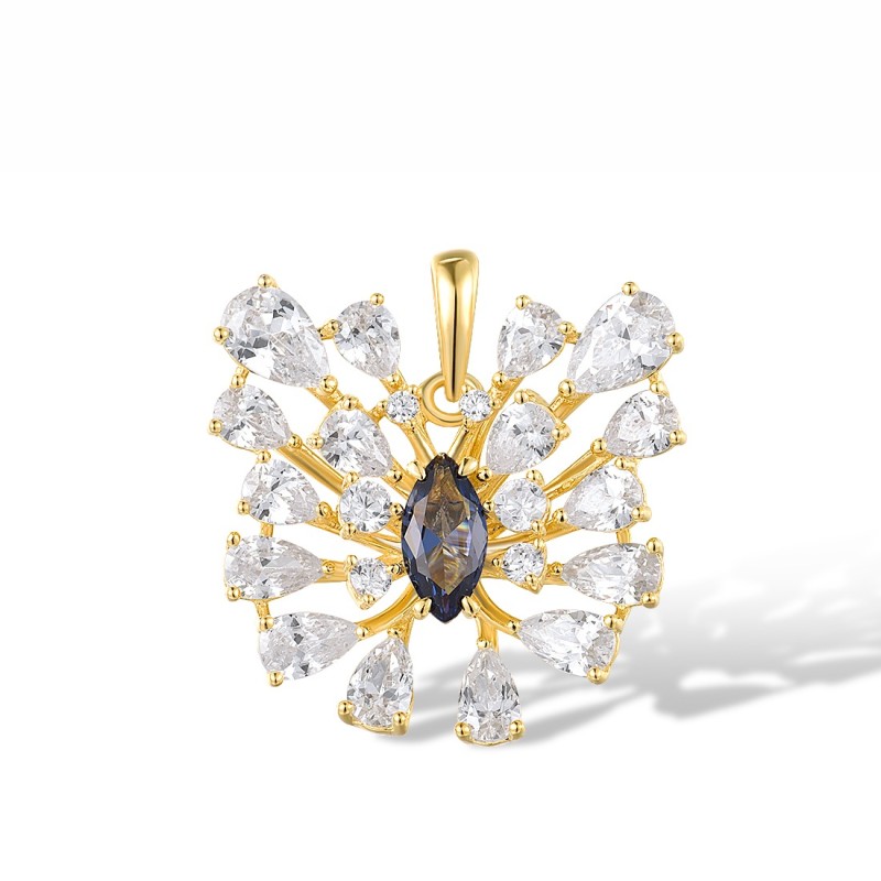 Sterling Silver w/ Yellow Plating Pendant Blue Spinel,White Cubic Zirconia (P317443BLZSY925)