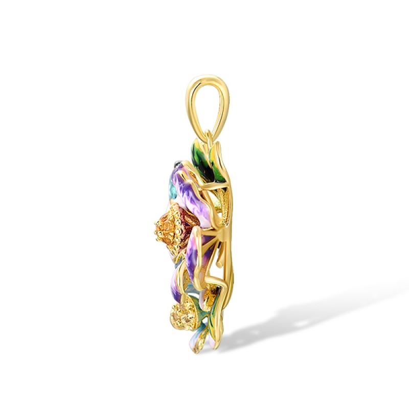 Sterling Silver w/ Yellow Black Plating Pendant Blue Glass,Blue Spinel,Enamel,Yellow Nano Cubic Zirconia (Ci (P314393ENASC925)