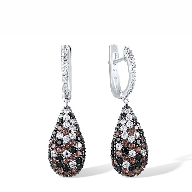 Sterling Silver w/ Black White Plating Earrings Black spinel,Nano Brown Spinel,White Cubic Zirconia (E303539SCWZSK925)