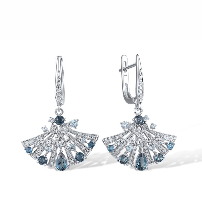 14KW Earrings Blue Topaz (Swiss Blue),Diamond,London Blue Topaz,White Topaz (E318559LDB14KW)