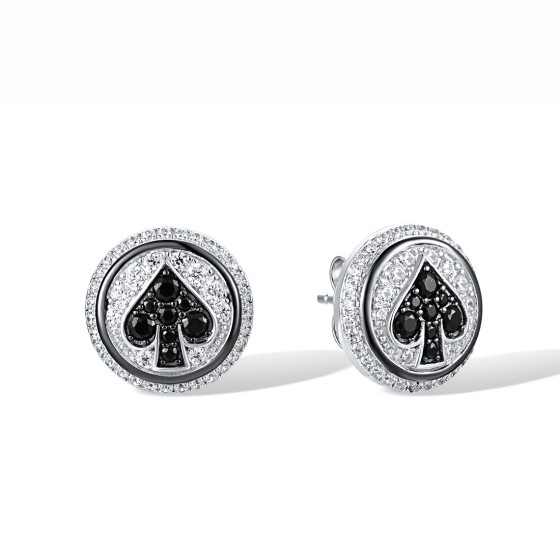 Sterling Silver w/ Black White Plating Earrings Black spinel,White Cubic Zirconia (E318138BSNZSK925)