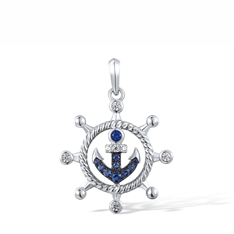 Sterling Silver w/ Black White Plating Pendant Blue Nano Cubic Zirconia,White Cubic Zirconia (P318109BZZSK925)