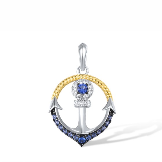 Sterling Silver w/ Yellow Black White Plating Pendant Blue Nano Cubic Zirconia,White Cubic Zirconia (P318108BZZSZ925)