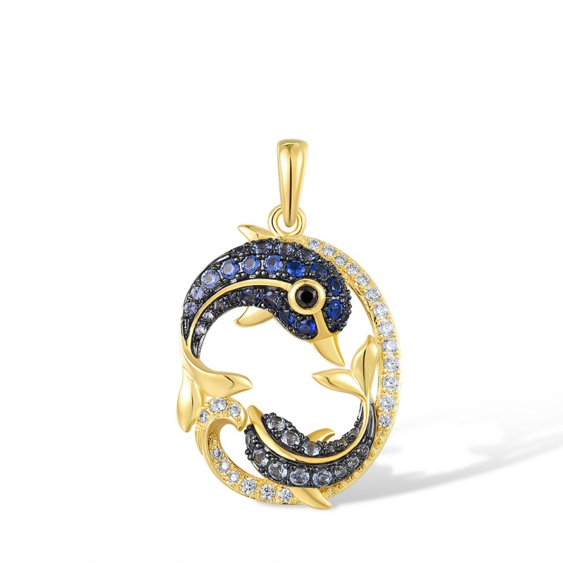 Sterling Silver w/ Yellow Black Plating Pendant Black spinel,Blue Nano Cubic Zirconia,Blue Spinel,White Cubic Zirconia (P318082MULSC925)