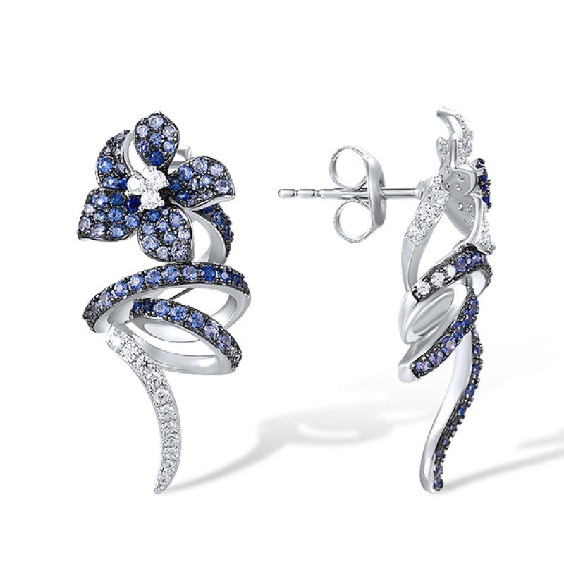 Sterling Silver w/ Black White Plating Earrings Blue Nano Cubic Zirconia,Blue Spinel,White Cubic Zirconia (E318053BNBZSK925)