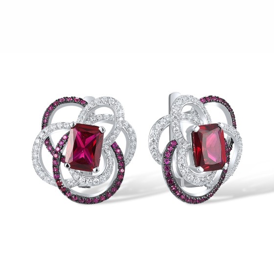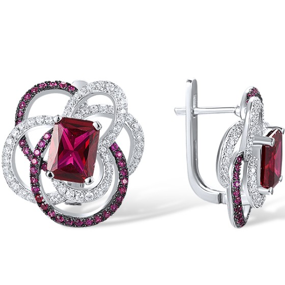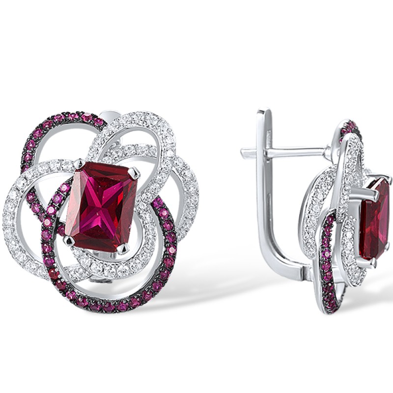 Sterling Silver w/ Black White Plating Earrings Created Ruby,White Cubic Zirconia (E317877CRZSK925)