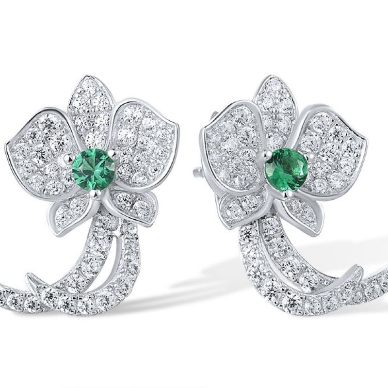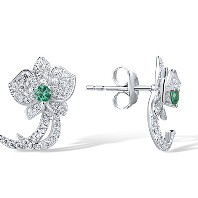 Sterling Silver Earrings Green Spinel,White Cubic Zirconia (E317277GSZSL925)