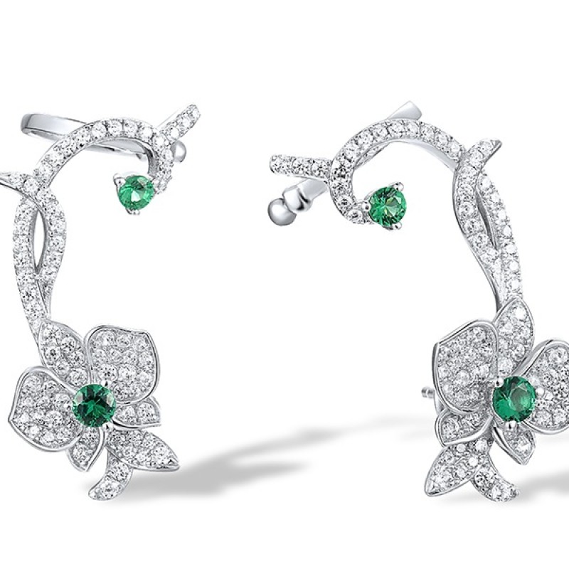 Sterling Silver Earrings Green Spinel,White Cubic Zirconia (E317276GSZSL925)