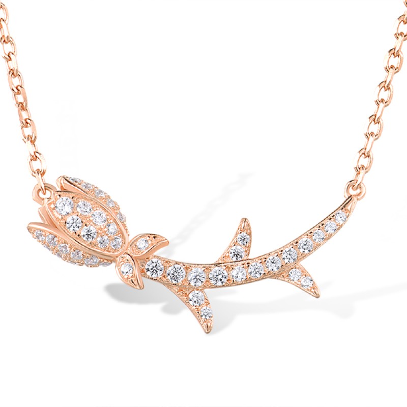 Sterling Silver w/ Rose Plating Necklace White Cubic Zirconia (N317264WCZSR925)