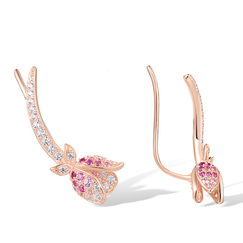 Sterling Silver w/ Rose Plating Earrings Created Pink Sapphire,Created Ruby,White Cubic Zirconia (E317257CPRZSR925)