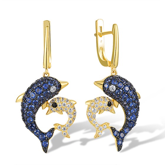 Sterling Silver w/ Yellow Black Plating Earrings Black spinel,Blue Nano Cubic Zirconia,White Cubic Zirconia (E316997BNSZSC925)
