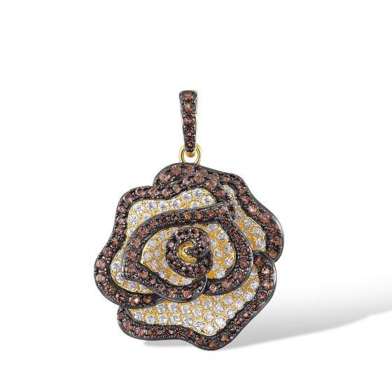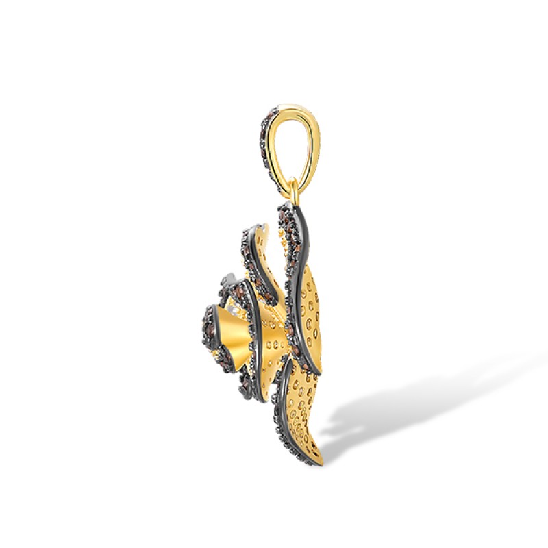 Sterling Silver w/ Yellow Black Plating Pendant Nano Brown Spinel,White Cubic Zirconia (P316897NBZSC925)