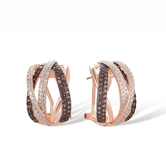 Sterling Silver w/ Rose Black Plating Earrings Nano Brown Spinel,White Cubic Zirconia (E316841NBZSD925)