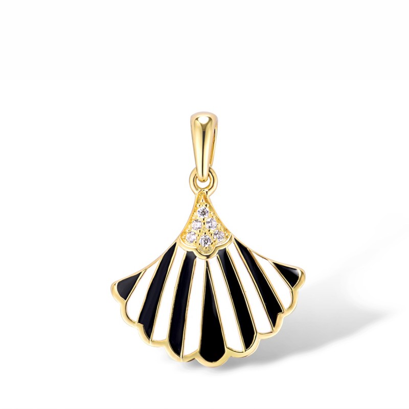 Sterling Silver w/ Yellow Plating Pendant Enamel,White Cubic Zirconia (P315139ENASY925)