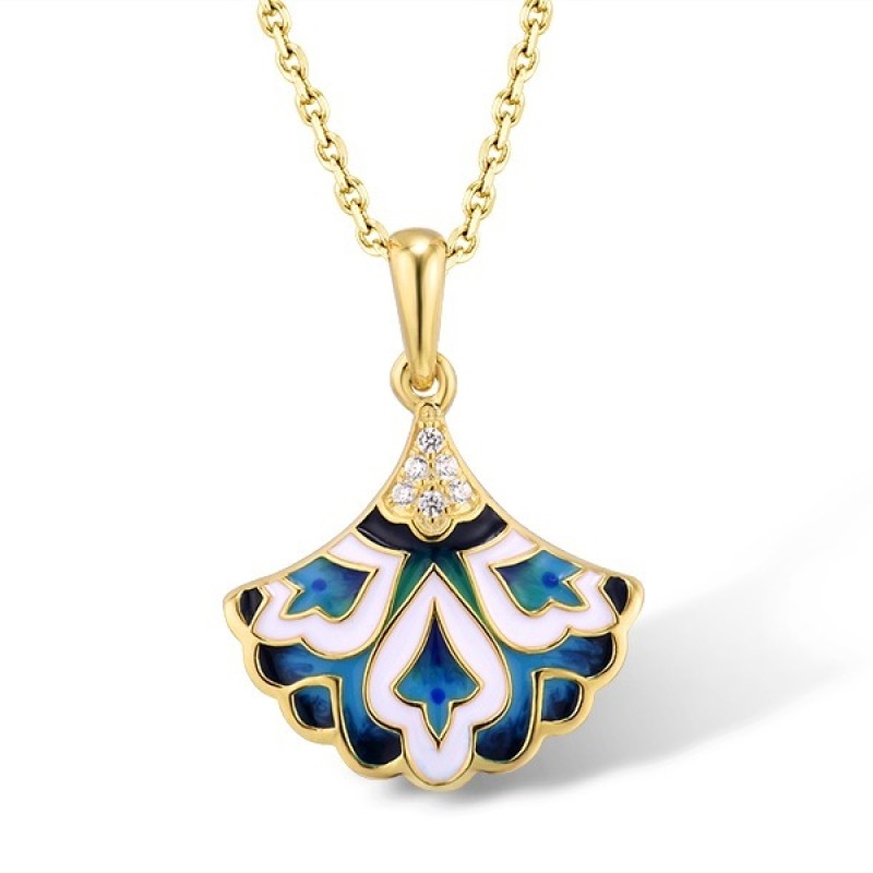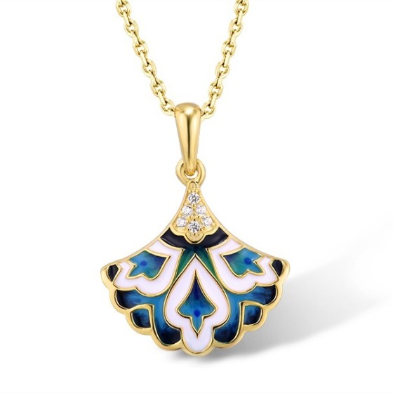 Sterling Silver w/ Yellow Plating Pendant Enamel,White Cubic Zirconia (P315138ENASY925)