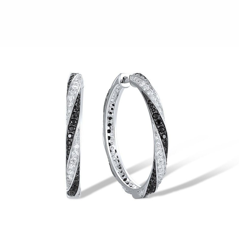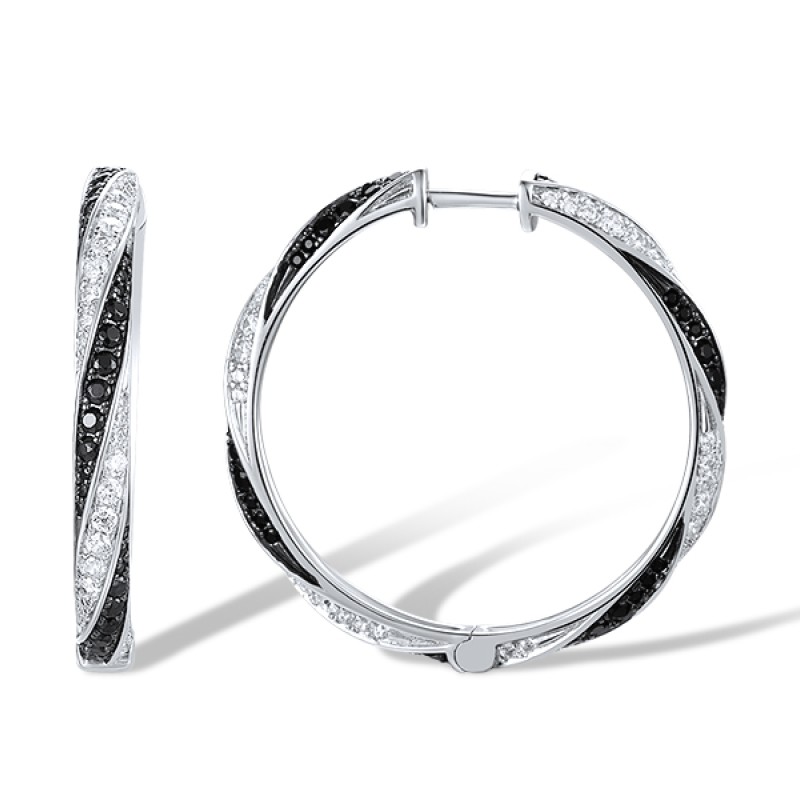 Sterling Silver w/ Black White Plating Earrings Black spinel,White Cubic Zirconia (E313949BSNZSK925)