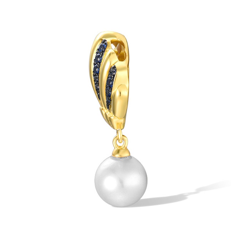 Sterling Silver w/ Yellow Black Plating Pendant Blue Nano Cubic Zirconia,White Shell Beads (P312847BZWSC925)