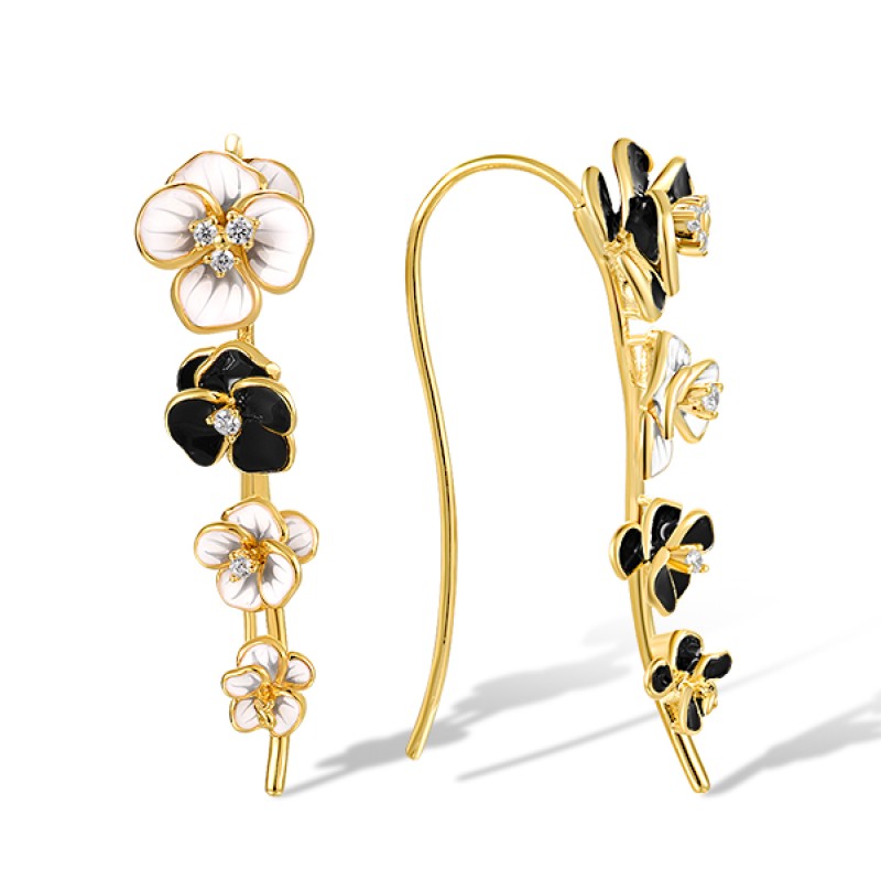 Sterling Silver w/ Yellow Plating Earrings Enamel,White Cubic Zirconia (E318226ENA1SY925)