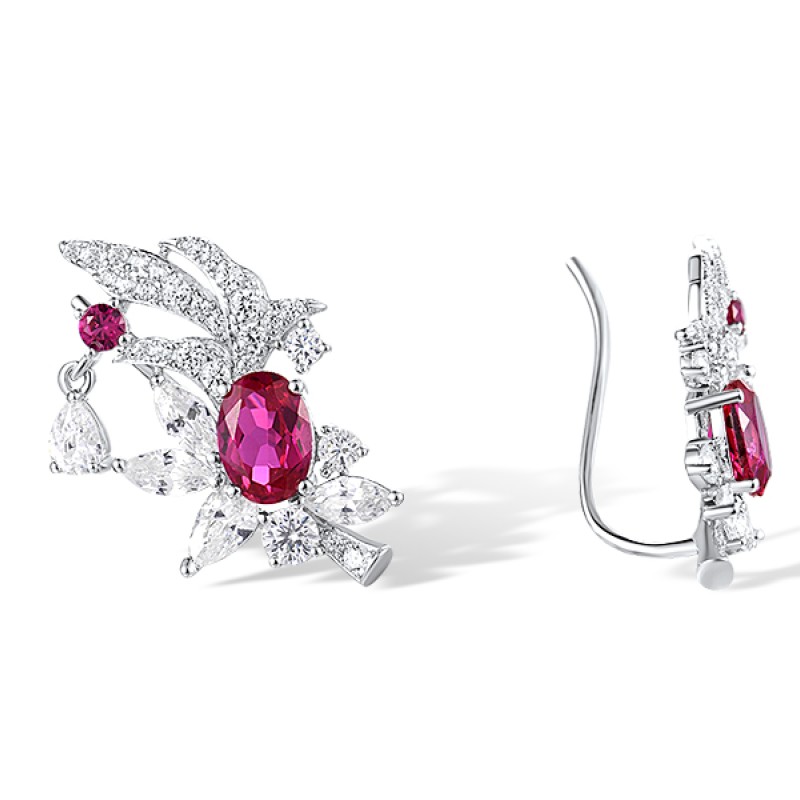 Sterling Silver Earrings Created Ruby,White Cubic Zirconia (E318224CRZSL925)