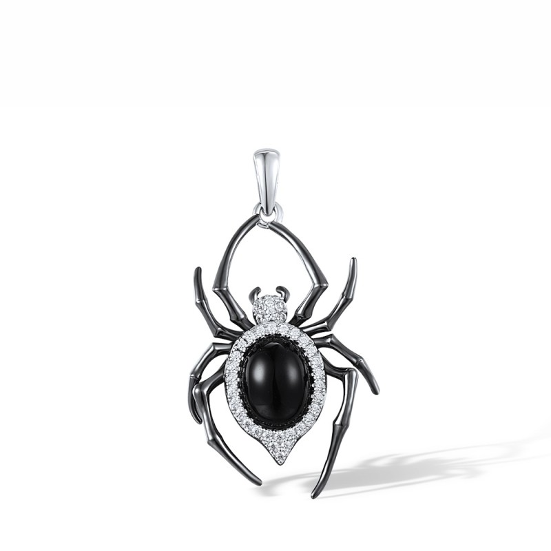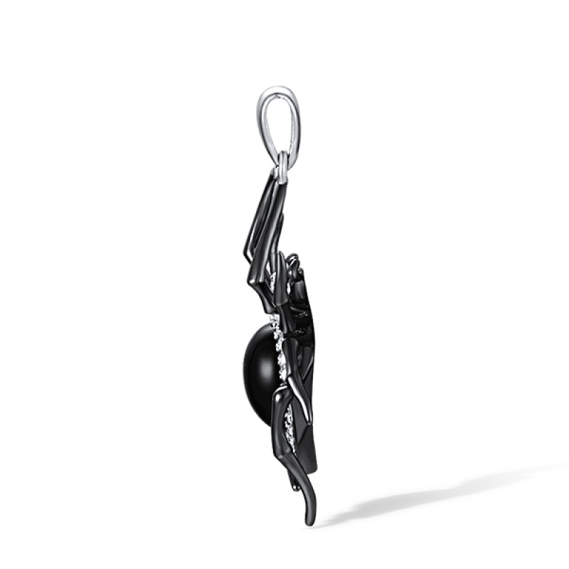Sterling Silver w/ Black White Plating Pendant Black Agate,White Cubic Zirconia (P318163ABAZSK925)
