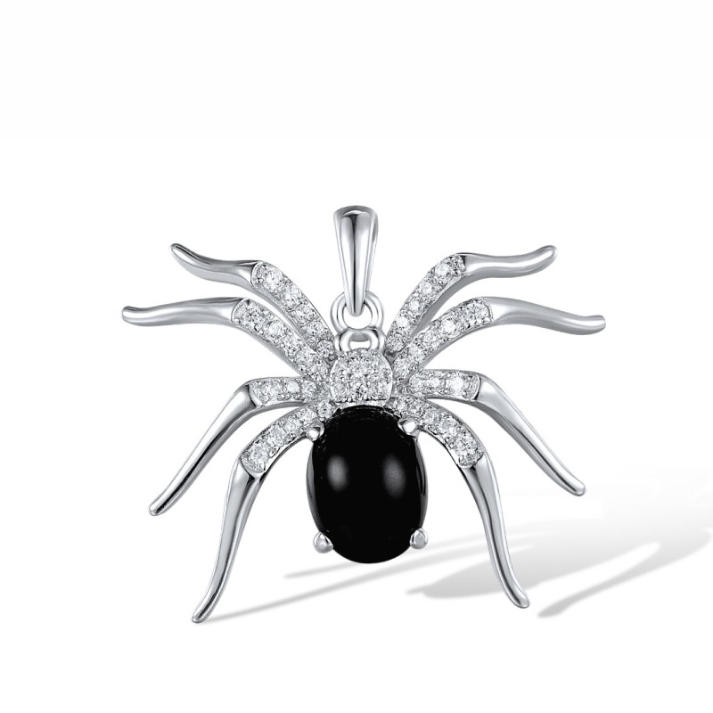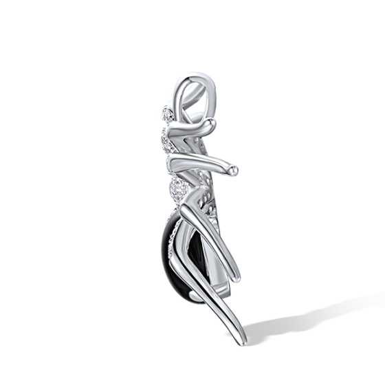 Sterling Silver Pendant Black Agate,White Cubic Zirconia (P318162BAZSL925)