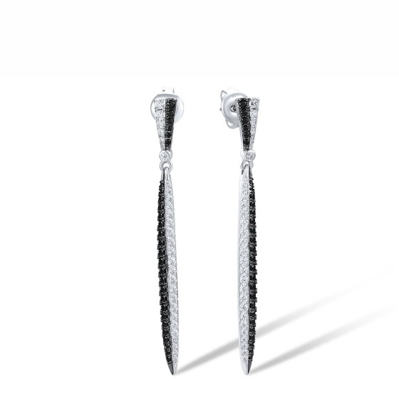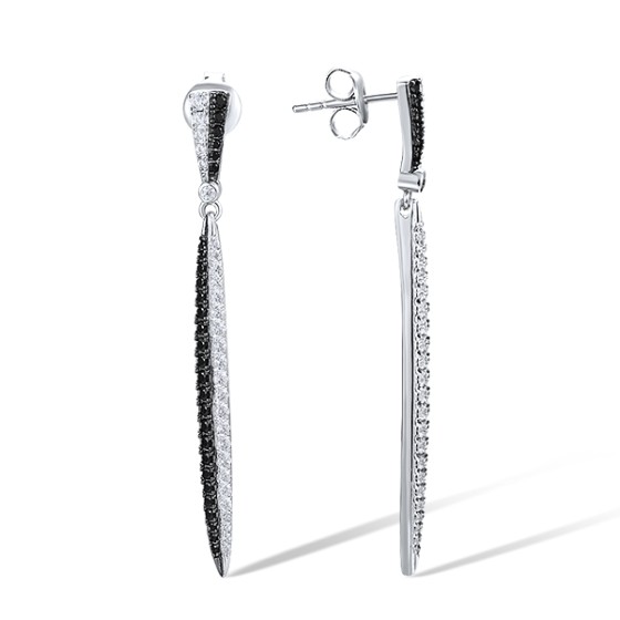 Sterling Silver w/ Black White Plating Earrings Black spinel,White Cubic Zirconia (E318131BSNZSK925)