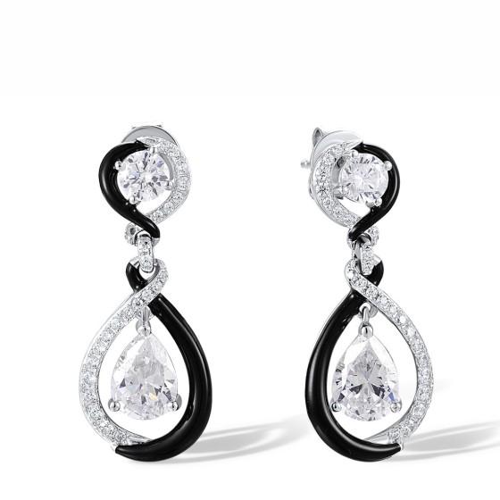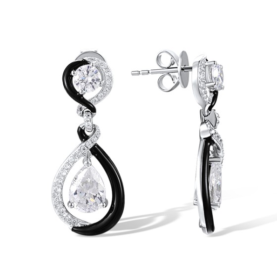 Sterling Silver Earrings Enamel,White Cubic Zirconia (E318129ENASL925)